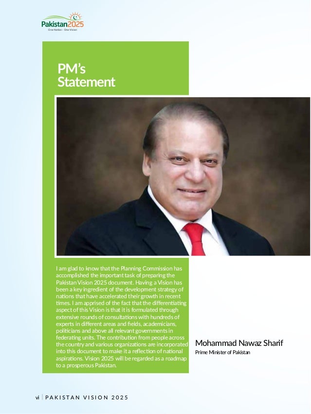 Pakistan 2025 Visionworks. Vision 2025 with the first stage of greater, more long terms vision leading up to our first century in 2047. Pakistan vision 2025 aims at substantial expansion in levels of education as well as improvements in the quality of education.